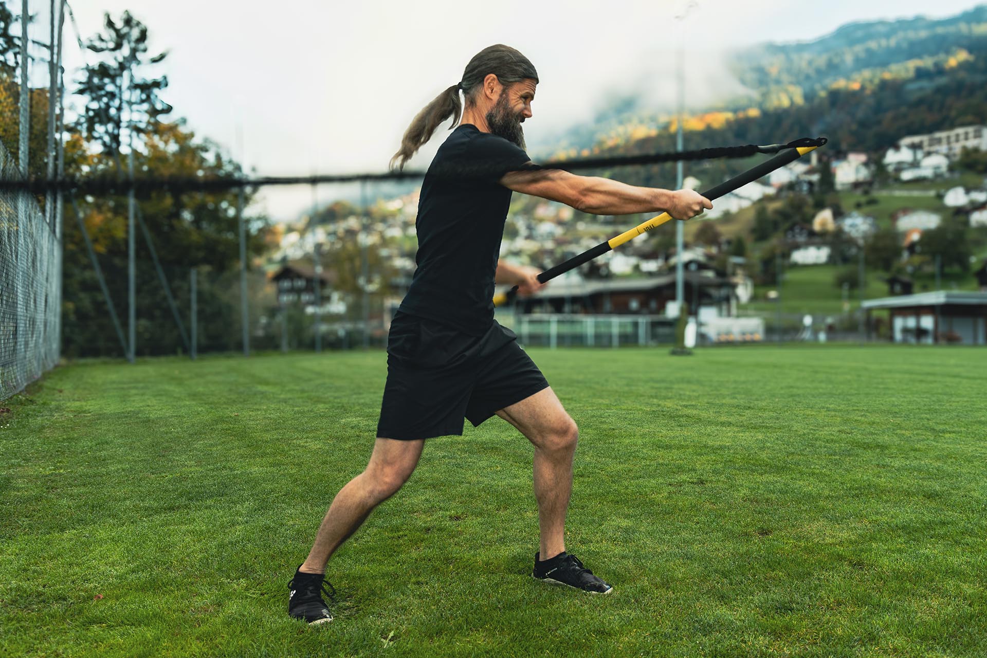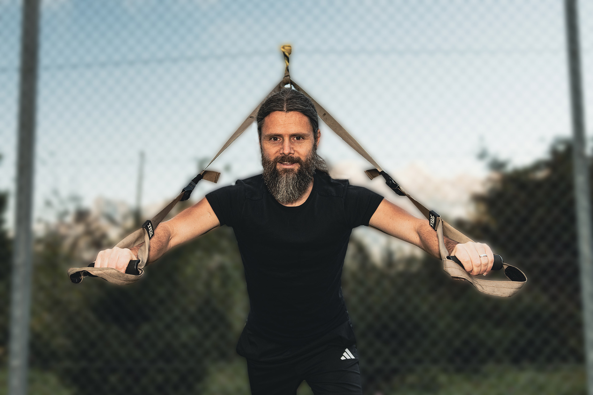 Wir arbeiten mit dem eigenen Körpergewicht als auch mit Hilfsmitteln wie z.B. Schlingentrainern.